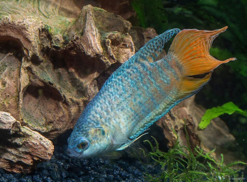 The aquarium should have a volume of at least 100 litres. We recommend a water temperature of 18 to 26°C. This makes it possible to keep paradise fish at room temperature without heating. The aquarium water should ideally be slightly acidic to alkaline (pH value: approx. 6.0 – 8.5). A medium hardness level (GH value: approx. 5 – 19°dH) is also frequently recommended, but these fish can also be kept in softer or harder water.